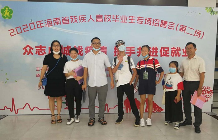 帶領(lǐng)學(xué)生參加2020年海南省殘疾人高校畢業(yè)生專場招聘會(招生就業(yè)處供圖)