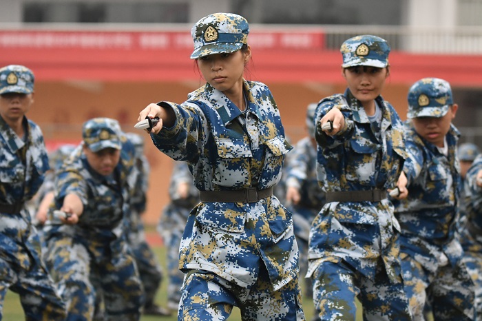 軍事訓(xùn)練科目表演——匕首操(黨委宣傳部供圖)