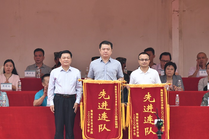 校長助理李琳娜宣讀2020級新生軍訓(xùn)工作、“新生獎學(xué)金”、軍迷文化節(jié)、海南省大學(xué)生沙灘排球和籃球賽等表彰文件。黨委書記王承慶,黨委副書記、校長王安興, ??谑旋埲A區(qū)區(qū)委常委、區(qū)人武部政委梁雙喜上校,副校長黃銀珍,黨委委員、工會主席林方賀及校長助理吳肖淮分別為獲獎集體和個人頒獎。