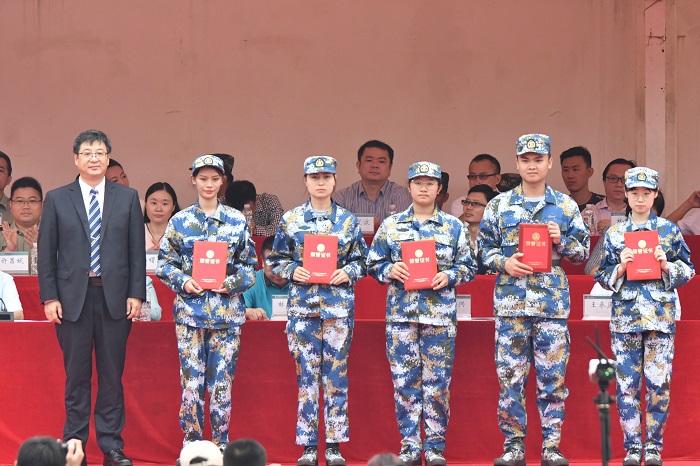 王安興代表學(xué)校黨政領(lǐng)導(dǎo)班子向承擔(dān)新生軍訓(xùn)訓(xùn)練任務(wù)教官、學(xué)生帶訓(xùn)教官和軍訓(xùn)工作人員表示衷心的感謝,向來自全國26個省市自治區(qū)、30個民族、4200多名新生表示熱烈的歡迎。他表示,在海南自由貿(mào)易港建設(shè)的開局之年、海南職業(yè)技術(shù)學(xué)院成立20周年這個富有歷史意義的時刻,在你們?nèi)松飞嫌忠粋€新的起點(diǎn),希望同學(xué)們用三年的時光勤奮學(xué)習(xí)并體會職業(yè)教育精神,努力培養(yǎng)嚴(yán)謹(jǐn)細(xì)致的做事風(fēng)格、精益求精的“工匠精神”;用三年的時光發(fā)現(xiàn)自己并探尋時代發(fā)展的機(jī)遇,相信奮斗的力量,擁有向上的信心,不怕經(jīng)受歷練,主動自覺地追求充實、廣闊和更有意義的人生;用一生的時光勤奮奔跑并樹立服務(wù)祖國的理念,一如既往地保持對知識的熱愛,保持勤奮踏實的品格,勇做走在時代前面的奮進(jìn)者、開拓者、奉獻(xiàn)者,努力成為祖國建設(shè)的有用之才、棟梁之材。