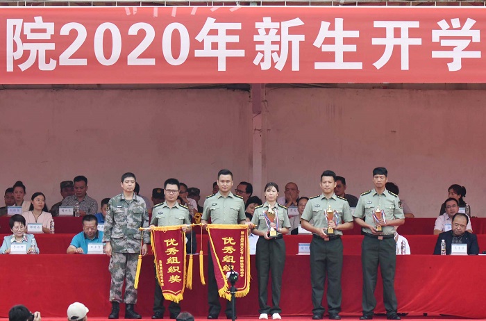 副校長黃銀珍為軍訓(xùn)科目展演獲獎學(xué)院頒獎(黨委宣傳部供圖)