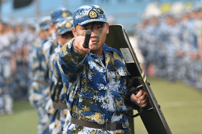 學(xué)校黨委學(xué)生工作部部長、人民武裝部部長、2020級學(xué)生軍訓(xùn)大隊部政委許昌斌作軍訓(xùn)工作總結(jié),教師代表劉伽妮和新生代表陳瑾怡在大會上發(fā)言。