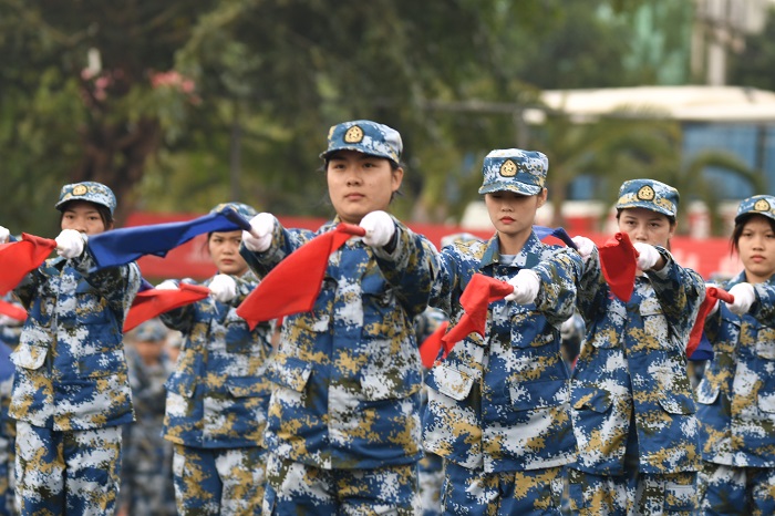 軍事訓(xùn)練科目表演——旗語通信(黨委宣傳部供圖)