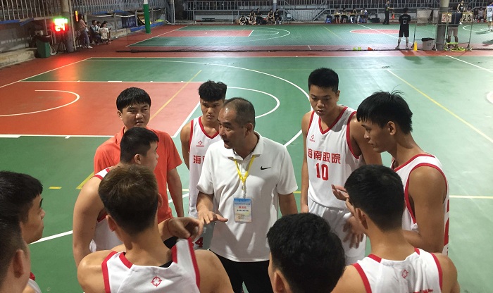 教練員場(chǎng)下指導(dǎo)男籃隊(duì)員(學(xué)生工作處供圖)