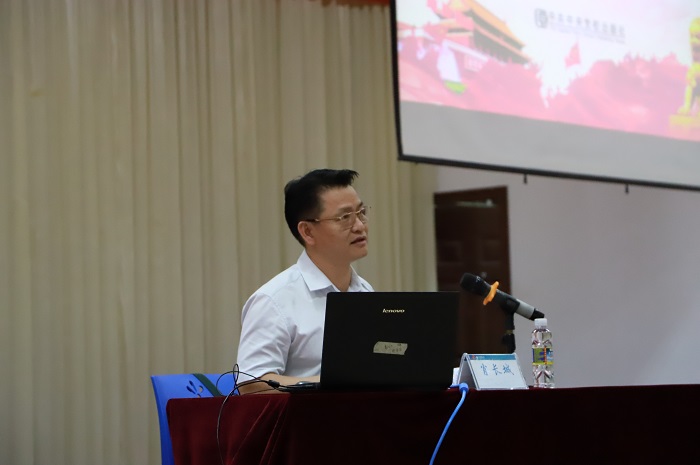 肖長(zhǎng)城作《肩負(fù)使命 砥礪前行》黨課第一講授課(黨委宣傳部供圖)