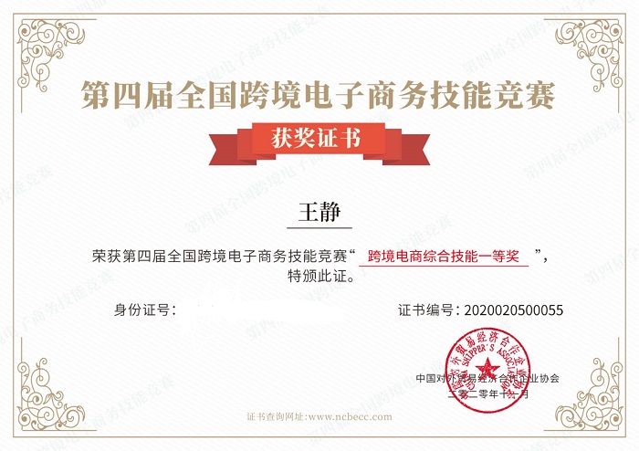 王靜榮獲第四屆全國(guó)跨境電子商務(wù)技能競(jìng)賽跨境電商綜合技能一等獎(jiǎng)(經(jīng)管學(xué)院供圖)