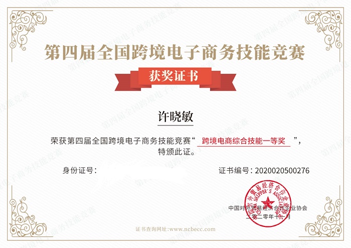 許曉敏榮獲第四屆全國(guó)跨境電子商務(wù)技能競(jìng)賽跨境電商綜合技能一等獎(jiǎng)(經(jīng)管學(xué)院供圖)