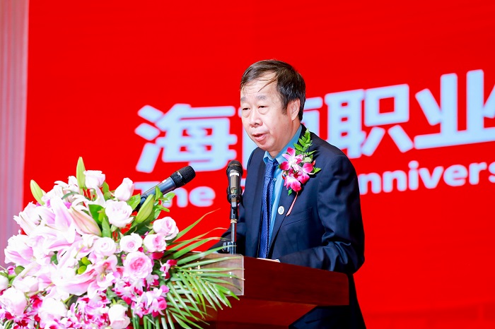 海南職業(yè)技術(shù)學(xué)院校長王安興代表全校師生向出席慶典大會的各位領(lǐng)導(dǎo)、各界朋友和廣大校友表示熱烈的歡迎和衷心的感謝,向曾經(jīng)參與籌建海職院的老領(lǐng)導(dǎo)、老教師、老同志致以崇高的敬意,向一直以來關(guān)心和支持海職院發(fā)展的各級黨政領(lǐng)導(dǎo)、企事業(yè)單位、兄弟院校以及社會各界人士致以衷心的感謝。他表示,海南職業(yè)技術(shù)學(xué)院將始終立足國家建設(shè)事業(yè)和經(jīng)濟(jì)社會發(fā)展需要,全面深化綜合改革,不斷強(qiáng)化內(nèi)涵建設(shè),勵(lì)精圖治、銳意進(jìn)取,向著既定奮斗目標(biāo)繼續(xù)奮進(jìn),譜寫屬于新時(shí)代的風(fēng)華篇章。