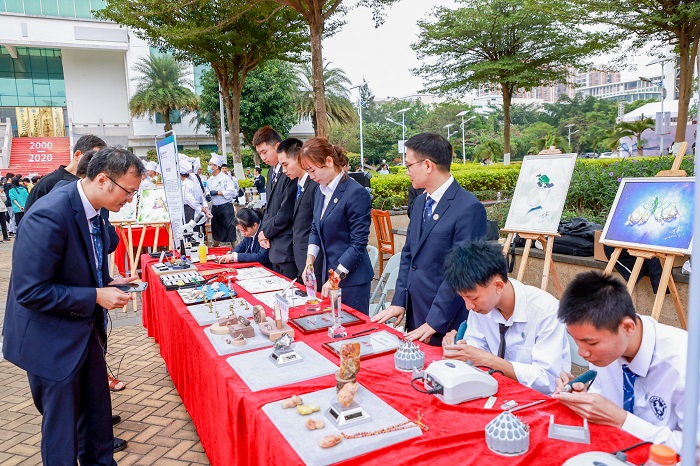 慶典大會結(jié)束后,與會嘉賓共同出席了黃炎培先生雕像揭幕儀式,并一同觀看學(xué)校職業(yè)教育成果展。