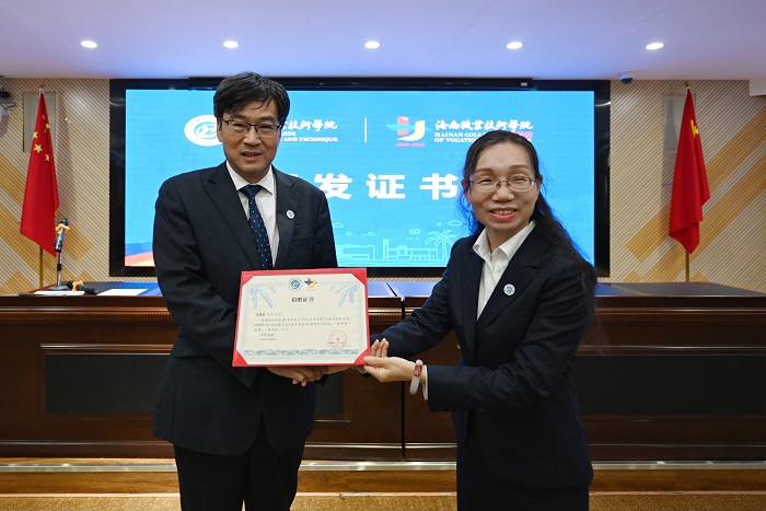 黃銀珍為何明躍頒發(fā)捐贈證書(旅游學(xué)院供圖)