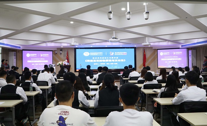 何明躍教授為海職師生作《珠寶玉石的物質(zhì)性與文化性》專題講座(旅游學(xué)院供圖)