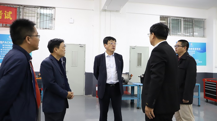 謝俐先后參觀了珠寶實訓(xùn)室、領(lǐng)帥現(xiàn)代人才服務(wù)基地、汽車實訓(xùn)室、新能源充電樁實訓(xùn)基地和校史館,并在圖書館高端培訓(xùn)基地觀看了國家非物質(zhì)文化(黎錦)培訓(xùn)匯報展演。
