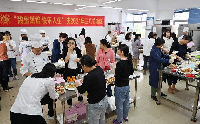 為慶祝“三八”國(guó)際勞動(dòng)?jì)D女節(jié),培養(yǎng)我校女教職工的興趣愛(ài)好,豐富業(yè)余生活,提高幸福指數(shù),3月8日上午,校工會(huì)女工委聯(lián)合學(xué)校旅游學(xué)院舉辦“甜蜜烘焙 快樂(lè)人生”烘焙活動(dòng),在專業(yè)老師的帶領(lǐng)下,大家現(xiàn)場(chǎng)學(xué)習(xí)制作蛋糕?;顒?dòng)吸引了學(xué)校80多名女教職工參加。