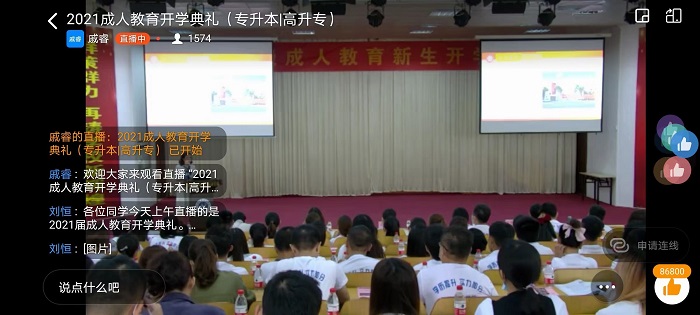 2021級(jí)成人高等教育新生開(kāi)學(xué)典禮線上釘釘直播(繼續(xù)教育學(xué)院供圖)