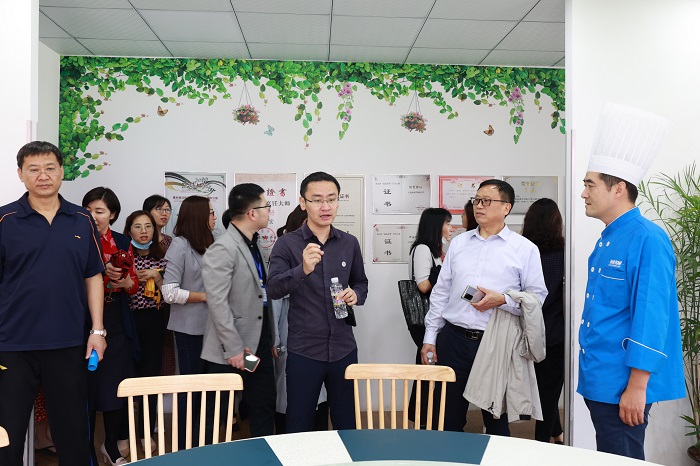 王安興校長代表學(xué)校對訪問團的到訪表示熱烈歡迎。康霖副校長陪同訪問團一行參觀了學(xué)校校史館、珠寶專業(yè)實訓(xùn)室、領(lǐng)帥現(xiàn)代服務(wù)人才培養(yǎng)基地、新能源汽車電子充電樁專項能力培訓(xùn)基地、非遺黎錦精品館、黎錦大師工作室等校內(nèi)場所,觀看了由我校禮儀隊師生共同編導(dǎo)的非遺黎錦走秀,參加了我校烹調(diào)工藝與營養(yǎng)專業(yè)師生的教學(xué)匯報晚宴。