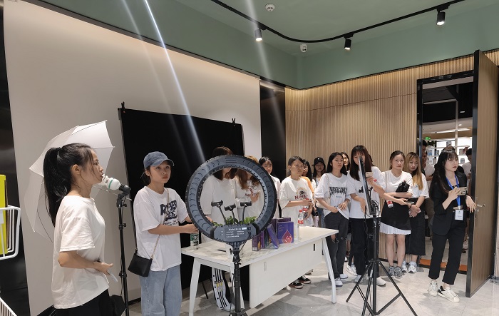 經(jīng)濟管理學(xué)院電子商務(wù)專業(yè)群師生在南海直播基地學(xué)習(xí)實踐(經(jīng)管學(xué)院供圖)