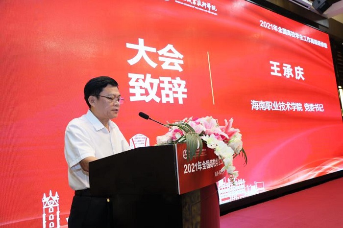 王承慶代表海南職業(yè)技術(shù)學院致歡迎詞。他對全體學員和嘉賓表示熱烈歡迎,向?qū)W員們介紹了海職院在黨建思政工作和輔導員隊伍建設(shè)方面的探索與成績,祝愿全體學員此次培訓“學有所獲、學有所感、學有所成”。