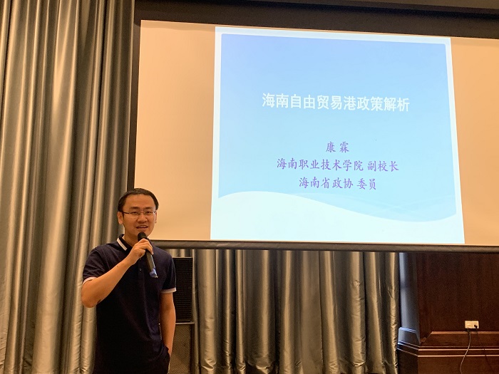 康霖應(yīng)邀在“自貿(mào)港沙龍”上作《海南自由貿(mào)易港政策解析》(黨委宣傳部供圖)