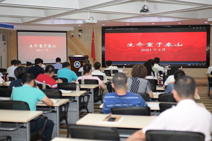 全體與會人員集體收看了由國務(wù)院安委會辦公室、應(yīng)急管理部組織制作的《生命重于泰山——學(xué)習(xí)習(xí)近平總書記關(guān)于安全生產(chǎn)重要論述》專題片。會上,學(xué)生工作處和后勤保衛(wèi)處負(fù)責(zé)人分別就近期學(xué)校安全穩(wěn)定工作作了匯報。
