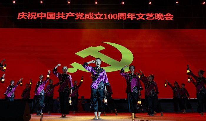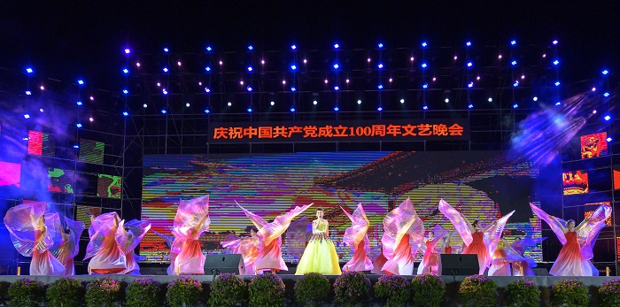 海南職業(yè)技術學院舉行“永遠跟黨走”慶祝中國共產黨成立100周年文藝晚會(黨委宣傳部供圖)