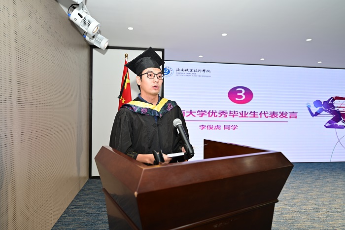 李俊虎、陶濤分別作為海南大學(xué)優(yōu)秀畢業(yè)生代表、海南職業(yè)技術(shù)學(xué)院優(yōu)秀畢業(yè)生代表發(fā)言。