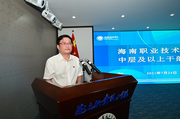 7月24日,海南職業(yè)技術(shù)學(xué)院在圖書館六樓高端培訓(xùn)基地展演廳召開全體中層及以上干部會議,宣布學(xué)校董事會對學(xué)校行政領(lǐng)導(dǎo)班子調(diào)整決定。學(xué)校董事長徐自力、常務(wù)副董事長吳淦國、副董事長周炳才以及學(xué)校黨政領(lǐng)導(dǎo)、校長助理、全體中層干部參加了會議。學(xué)校黨委書記王承慶主持會議。