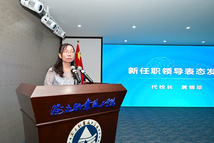 代校長黃銀珍隨后作任職表態(tài)發(fā)言,她表示將不負(fù)學(xué)校董事會和全體教職員工的重托,認(rèn)真履職盡責(zé),廉潔自律、解放思想、團(tuán)結(jié)帶領(lǐng)海職院走向更美好的明天。副校長李琳娜和符興干也分別表示將在黃銀珍代校長的帶領(lǐng)下,認(rèn)真履行崗位職責(zé),全力做好分管工作,共同推動學(xué)校發(fā)展再上新臺階。