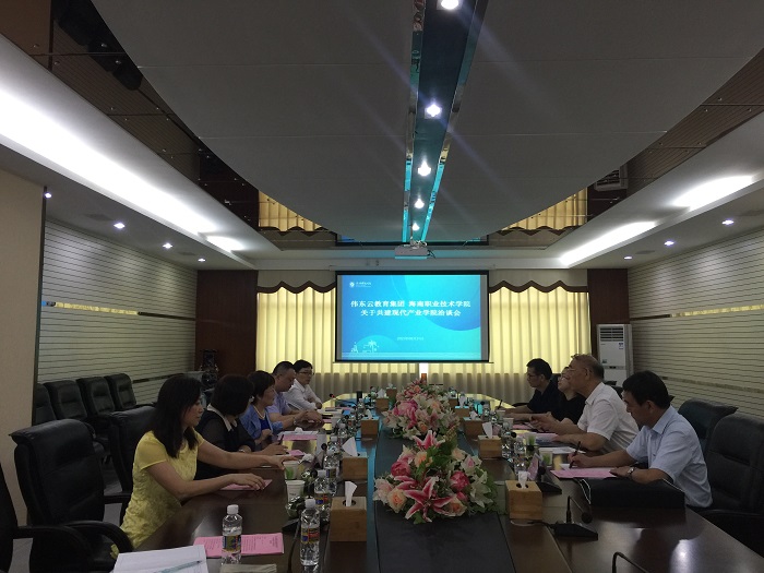 8月31日上午,海南職業(yè)技術(shù)學(xué)院副校長李琳娜在圖書館南山廳與來訪的偉東云教育集團副董事長姜正新、山東依智教育科技有限公司副總經(jīng)理盤淑萍洽談共建現(xiàn)代產(chǎn)業(yè)學(xué)院事宜。