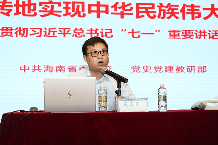 9月10日下午,海職院舉行黨史學(xué)習(xí)教育大講堂第六講暨學(xué)習(xí)貫徹習(xí)近平總書記“七一”重要講話精神專題報(bào)告會(huì)。中共海南省委黨校武良剛博士應(yīng)邀作了題為《不可逆轉(zhuǎn)地實(shí)現(xiàn)中華民族偉大復(fù)興——學(xué)習(xí)貫徹習(xí)近平總書記“七一”重要講話精神》專題報(bào)告會(huì)。學(xué)校黨委書記王承慶、代校長(zhǎng)黃銀珍、副校長(zhǎng)康霖,黨委委員、副校長(zhǎng)符興干聆聽了報(bào)告會(huì)。學(xué)校黨委副書記周炳才主持報(bào)告會(huì)。