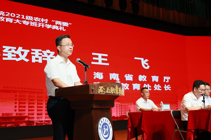(海南省教育廳高等教育處處長王飛致辭  黨委宣傳部供圖)