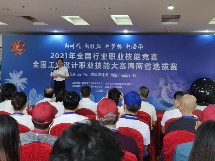 10月22日,2021年全國行業(yè)職業(yè)技能競賽——全國工業(yè)設(shè)計(jì)職業(yè)技能大賽海南選拔賽決賽在海南職業(yè)技術(shù)學(xué)院隆重開幕。大賽設(shè)首飾設(shè)計(jì)師、家具設(shè)計(jì)師、陶瓷產(chǎn)品設(shè)計(jì)師三個競賽項(xiàng)目。省工信廳產(chǎn)業(yè)發(fā)展處一級調(diào)研員柯水喜、省人社廳二級調(diào)研員汪偉平和海南職業(yè)技術(shù)學(xué)院副校長符興干出席開幕式并啟動選拔賽。