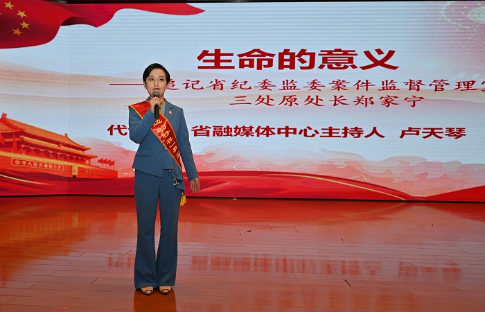 (主持人盧天琴講述鄭家寧生前事跡 黨委宣傳部供圖)
