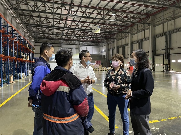 在艾待文的陪同下,黃銀珍校長一行還對羅牛山電商大廈、檢驗大樓的相關(guān)對接項目進行調(diào)研,走訪冷鏈物流1號、2號、4號倉庫,參觀企業(yè)現(xiàn)場工作環(huán)境,并親切看望了我校在崗實習(xí)與就業(yè)的學(xué)生。走訪期間,雙方就人才培養(yǎng)、學(xué)生實習(xí)與就業(yè)、項目對接內(nèi)容、教師掛職鍛煉等共同關(guān)注的問題進行深入的交流與探討。