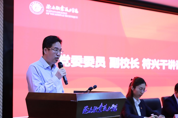 (黨委委員、副校長(zhǎng)符興干講話  學(xué)生工作處供圖)