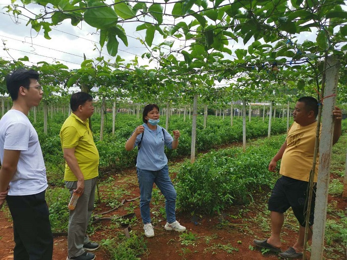 (專家組現(xiàn)場指導(dǎo)百香果種植技術(shù)  鄉(xiāng)村振興學(xué)院供圖)