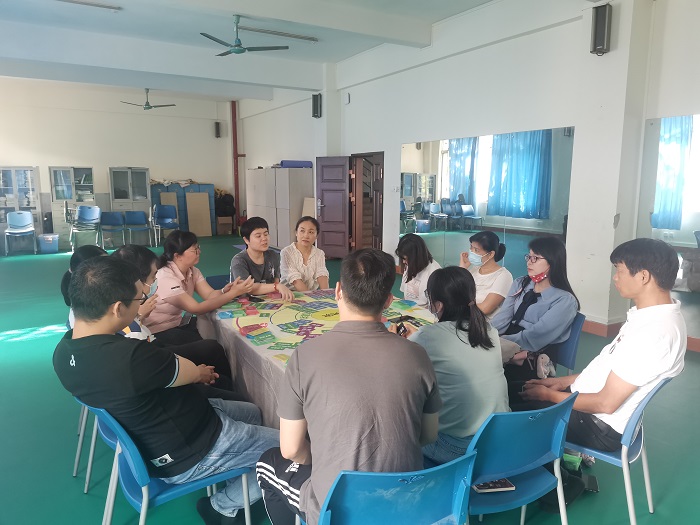 全體輔導(dǎo)員分兩批開展疏導(dǎo)和培訓(xùn)。高茹、尹嫦春利用工具包,讓輔導(dǎo)員們依次傾訴了當(dāng)前的情緒,厘清了輔導(dǎo)員們的內(nèi)心需求和解決需求的策略,有效幫助輔導(dǎo)員疏導(dǎo)了近期因家庭和工作沖突帶來的焦慮情緒和閉環(huán)管理的學(xué)生管理壓力。通過親身體驗(yàn)“走心桌游”心理疏導(dǎo)的流程和方法,也為輔導(dǎo)員們提供了一個(gè)有效解決學(xué)生情緒帶來的各種學(xué)生管理問題的方法。