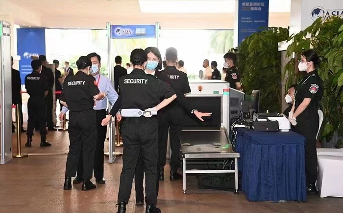 我校旅游學(xué)院高度重視此次保障任務(wù),自3月份開始就對(duì)該航空學(xué)生進(jìn)行為期一個(gè)多月緊張系統(tǒng)的專項(xiàng)培訓(xùn),通過課堂培訓(xùn)、崗位教學(xué)、綜合考核等方式確保學(xué)生達(dá)到保障任務(wù)要求。博鰲亞洲論壇年會(huì)期間,航空專業(yè)學(xué)生充分發(fā)揮專業(yè)優(yōu)勢(shì),堅(jiān)持安全保衛(wèi)無小事的理念,用精湛的專業(yè)技能,在博鰲亞洲論壇年會(huì)期間負(fù)責(zé)會(huì)議中心區(qū)域的安檢保障及安全檢查站的工作。以“零差錯(cuò)、零投訴、高質(zhì)量”的水準(zhǔn)圓滿完成任務(wù),為本次論壇的成功舉辦作出了積極貢獻(xiàn),贏得了??谔厍诰趾秃:桨矙z培訓(xùn)學(xué)院領(lǐng)導(dǎo)的高度贊譽(yù),得到了省外辦的高度認(rèn)可。