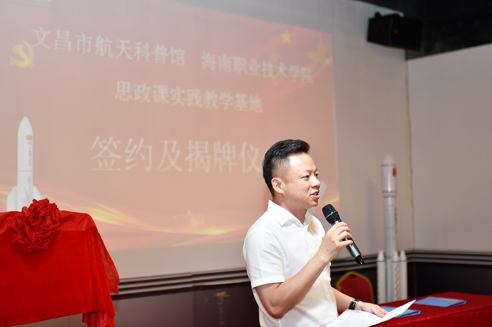 5月9日,我校思政課實(shí)踐教學(xué)基地簽約暨揭牌儀式在文昌航天科普館舉行。學(xué)校黨委副書記周炳才參加活動(dòng)并講話。文昌航天科普館館長(zhǎng)黃莉麗出席并致辭。