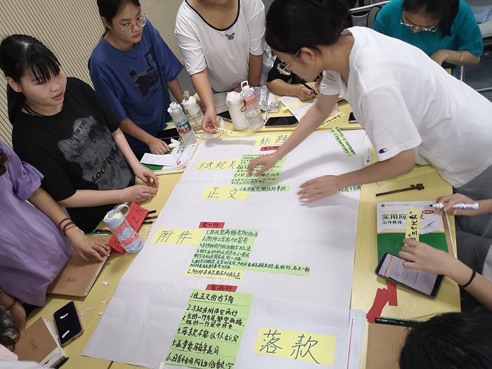 (語(yǔ)文課堂開展公文寫作卡紙制作活動(dòng)  通識(shí)教育學(xué)院供圖)