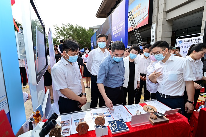 5月13日,在“技能·讓生活更美好”為主題的全國職業(yè)教育活動周期間,由海南省教育廳主辦的全省職業(yè)教育活動周在海南省圖書館廣場舉行。副省長王路在省教育廳廳長曹獻坤的陪同下,參觀了我校展區(qū)。