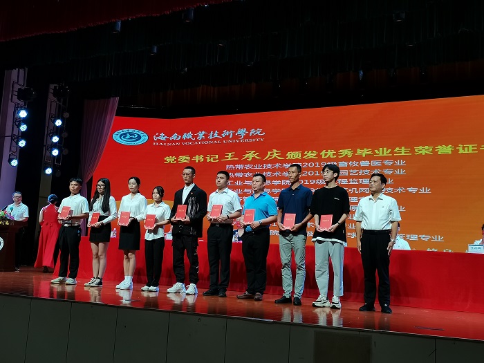 畢業(yè)典禮在雄壯的國(guó)歌聲中拉開序幕。代校長(zhǎng)黃銀珍為2022屆畢業(yè)生代表頒發(fā)畢業(yè)證書,黨委書記王承慶向2022屆優(yōu)秀畢業(yè)生頒發(fā)榮譽(yù)證書。黨委委員、副校長(zhǎng)符興干宣讀《海南職業(yè)技術(shù)學(xué)院關(guān)于批準(zhǔn)2021屆畢業(yè)生畢業(yè)的決定》《海南職業(yè)技術(shù)學(xué)院關(guān)于表彰2021屆優(yōu)秀畢業(yè)生的決定》。