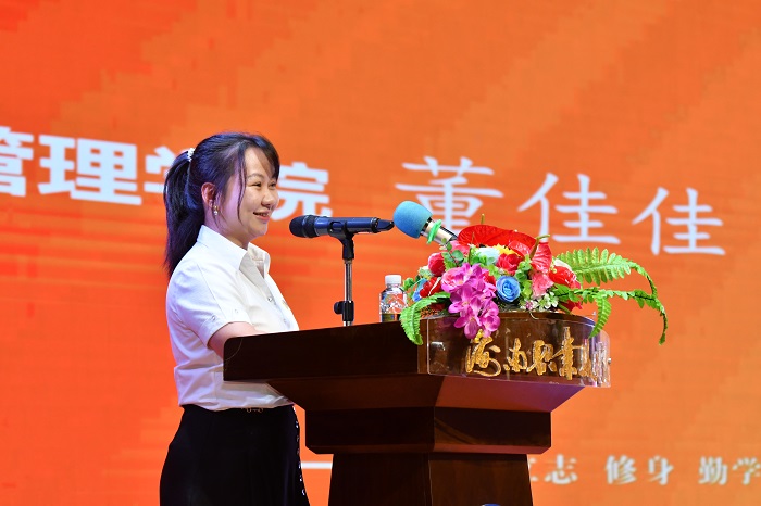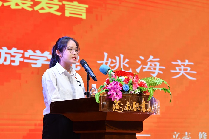 (在校生代表姚海英發(fā)言  黨委宣傳部供圖)
