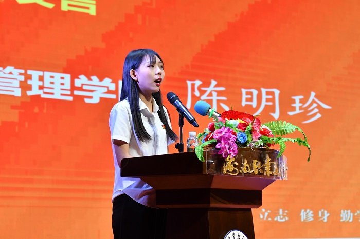 (畢業(yè)生代表陳明珍發(fā)言  黨委宣傳部供圖)