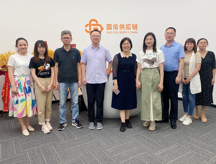 (調(diào)研組一行與國佑(海南)供應(yīng)鏈管理有限公司負(fù)責(zé)人合影  經(jīng)濟(jì)管理學(xué)院供圖)