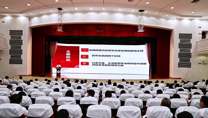 梁科博士以《學(xué)習(xí)黨的第三個(gè)歷史決議 堅(jiān)定共產(chǎn)黨員的初心使命 》為題,從黨的百年歷史發(fā)展主題、百年黨史的四個(gè)階段和黨的百年光輝歷程中汲取開創(chuàng)未來的智慧和力量等三個(gè)方面,總結(jié)講述“堅(jiān)持黨的領(lǐng)導(dǎo)、堅(jiān)持人民至上和堅(jiān)持理論創(chuàng)新”等十個(gè)方面黨的寶貴經(jīng)驗(yàn)和重要啟示。給全校教職工和學(xué)生代表帶來了一場(chǎng)內(nèi)容豐富,條理清晰,聲情并茂的黨史學(xué)習(xí)教育講座。帶領(lǐng)大家再次學(xué)習(xí)了黨的十九屆六中全會(huì)精神的重大意義、領(lǐng)悟其豐富內(nèi)涵和所提出的一系列新思想新觀點(diǎn)新論斷。讓與會(huì)人員深刻認(rèn)識(shí)中國(guó)共產(chǎn)黨矢志不渝為民的初心使命,深刻領(lǐng)會(huì)偉大的建黨精神和擔(dān)當(dāng)中華民族偉大復(fù)興的決心和意志。激勵(lì)師生更加堅(jiān)定教育初心使命、落實(shí)好立德樹人的根本任務(wù),增加信心、增強(qiáng)斗志,開創(chuàng)發(fā)展我校職業(yè)教育新局,在新的職教趕考之路上考出好成績(jī)。