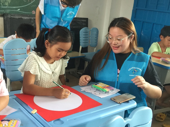 (學生志愿者與小學生互動  校團委供圖)