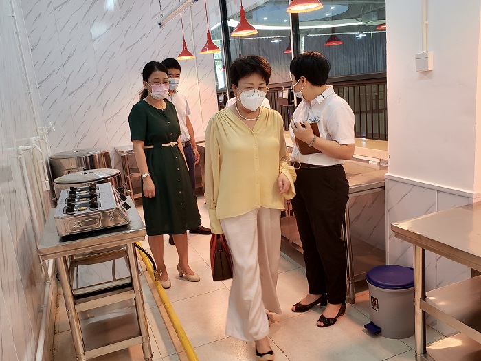 檢查現(xiàn)場(chǎng),學(xué)校領(lǐng)導(dǎo)強(qiáng)調(diào),一是做好用氣、用電、用水等安全,要求各食堂要嚴(yán)格落實(shí)食品安全管理,對(duì)加工經(jīng)營(yíng)場(chǎng)所、餐飲具、廚具等嚴(yán)格進(jìn)行清洗消毒,保障食品安全;二是做好新生入學(xué)準(zhǔn)備,全面清潔消殺,宿舍要開窗通風(fēng),樓棟生銹不牢固的空調(diào)支架及時(shí)更換防止高空墜物,要做到讓學(xué)生舒心、家長(zhǎng)放心;三是壓實(shí)責(zé)任,要求相關(guān)部門對(duì)消防設(shè)施設(shè)備、用電設(shè)備及線路、食堂燃?xì)獾冗M(jìn)行定期檢查,保證安全使用,消除安全隱患;四是要做好門崗進(jìn)出人員管理,落實(shí)兩碼查驗(yàn)、戴口罩、測(cè)體溫、掃地點(diǎn)碼等各個(gè)環(huán)節(jié),抓好疫情防控工作不松懈。