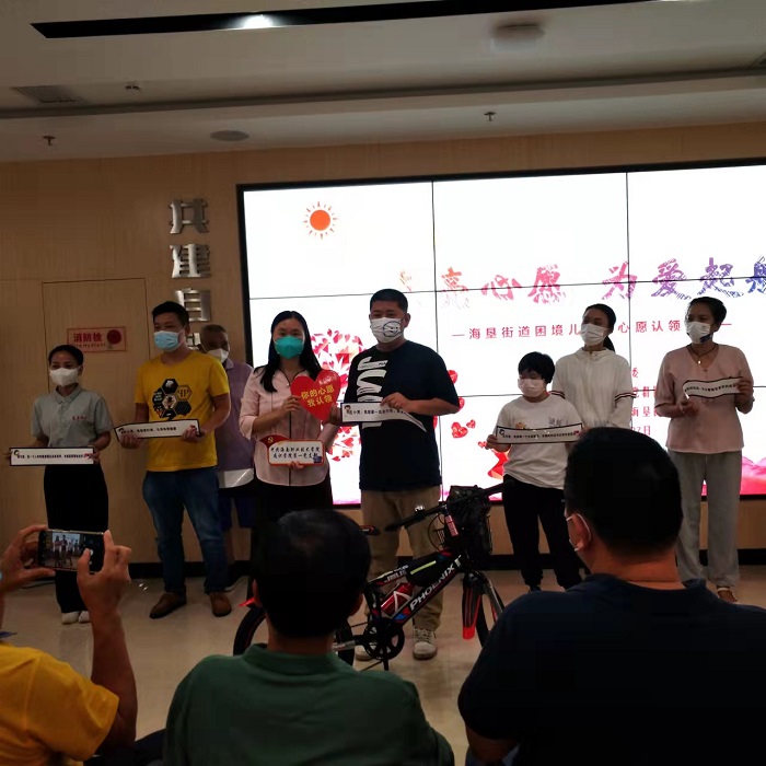 10月27日下午,由??谑旋埲A區(qū)海墾街道金山大社區(qū)黨群服務(wù)中心組織的“點(diǎn)亮心愿,為愛起航”困境兒童微心愿認(rèn)領(lǐng)儀式在金山大社區(qū)綜合服務(wù)中心舉行,通識(shí)教育學(xué)院黨總支、海南口腔醫(yī)院黨支部及海南公路建設(shè)項(xiàng)目管理有限公司黨支部等12家黨組織及企業(yè)、“微心愿”受助對(duì)象共39人參加活動(dòng)。