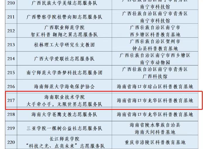 海南職業(yè)技術學院志愿服務隊入選2022年全國大學生科技志愿服務示范團隊