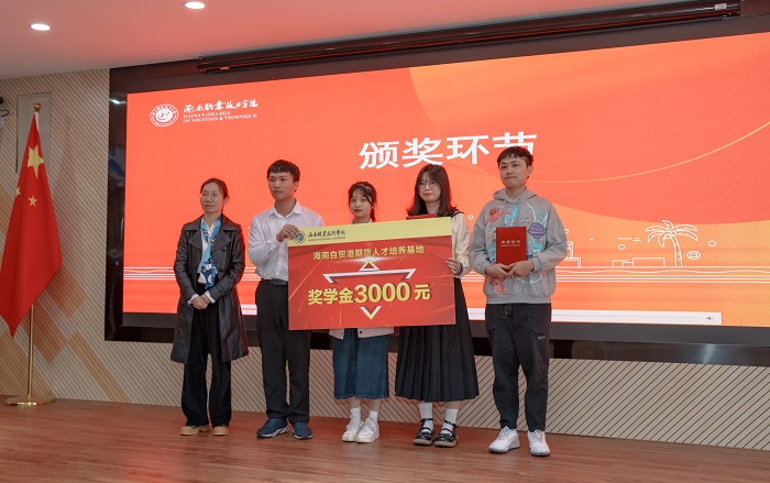 (海南職業(yè)技術(shù)學(xué)院代校長(zhǎng)黃銀珍為優(yōu)秀學(xué)員頒發(fā)獎(jiǎng)學(xué)金  經(jīng)濟(jì)管理學(xué)院供圖)